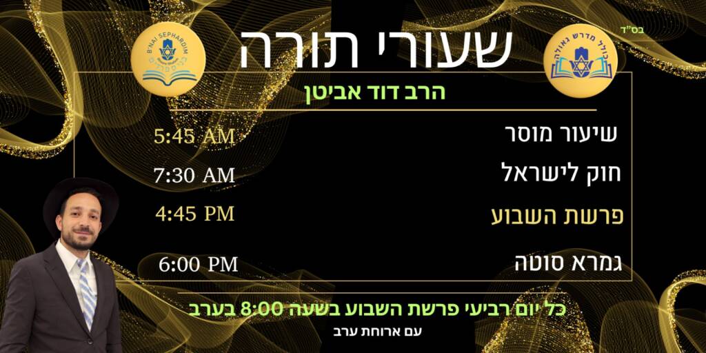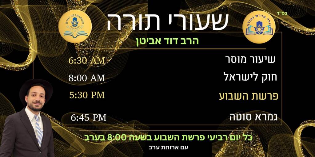 Our shiurim and classes offer meaningful Torah learning for all levels, grounded in Sephardic tradition and practical halacha. Through engaging study and thoughtful discussion, we strive to deepen understanding, strengthen emunah, and inspire growth in everyday Jewish life.