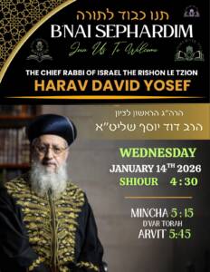 Chief Rabbi of Israel – Harav David Yosef joins B’nai Sephardim