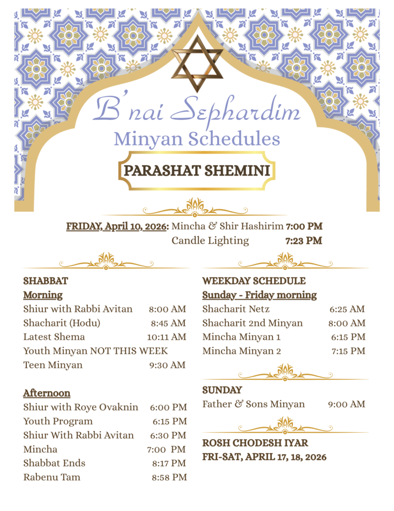 8:00 AM Shiur with Rabbi Avitan